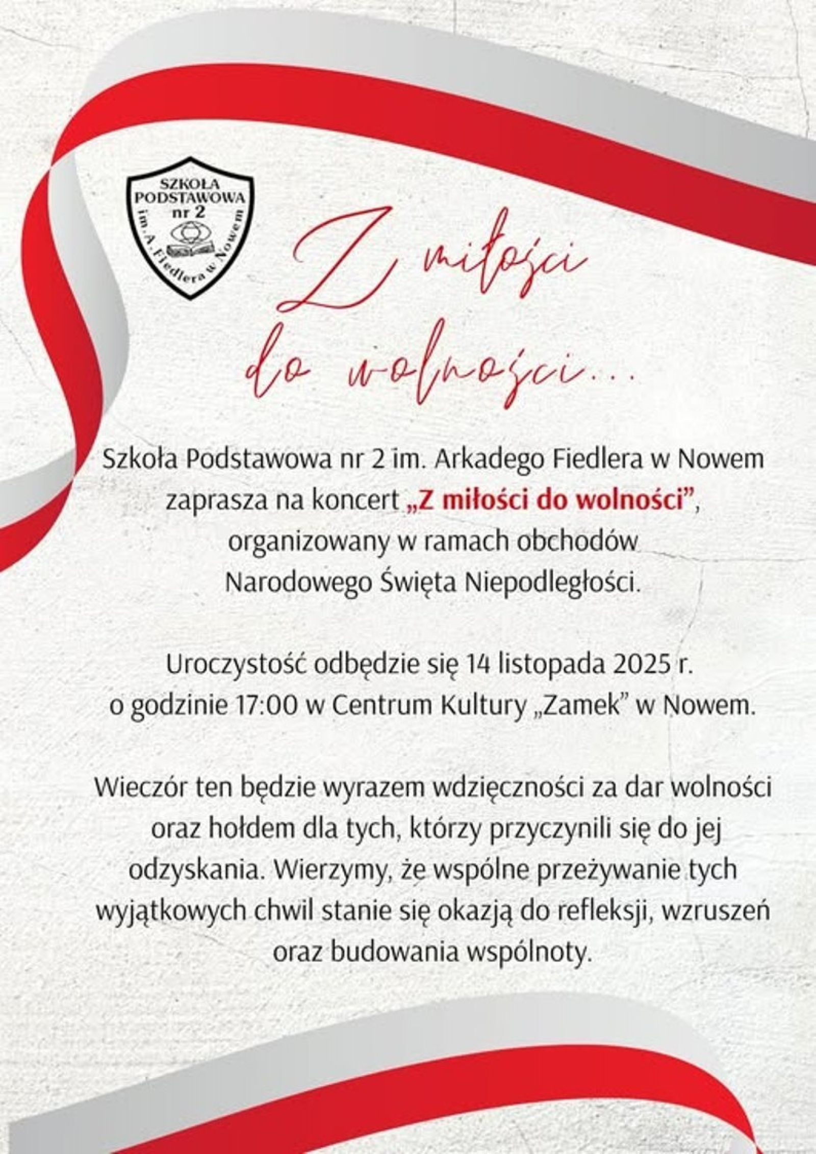 W imieniu organizatorów zapraszamy na uroczystości Narodowego Święta Niepodległości. Uroczystości rozpoczynamy 11 listopada 2025 roku o godzinie 13:45 zbiórką pocztów sztandarowych pod zamkiem a następnie o godzinie 14:00 Msza Święta w Farze. O godzinie 15:00 odbędą się uroczystości na Rynku. Muzycznym podsumowaniem dnia będzie koncert zespołu „Artis” o godzinie 18:00 w Centrum Kultury Zamek. Dzień później – 12 listopada od godziny 11:00 na Rynku obchody zaplanowali uczniowie szkół podstawowych i ponadpodstawowych oraz Związek Rezerwistów RP. Koncert „Z miłości do wolności”, w piątek o 17:00 w CK Zamek, zakończy cykl uroczystości.