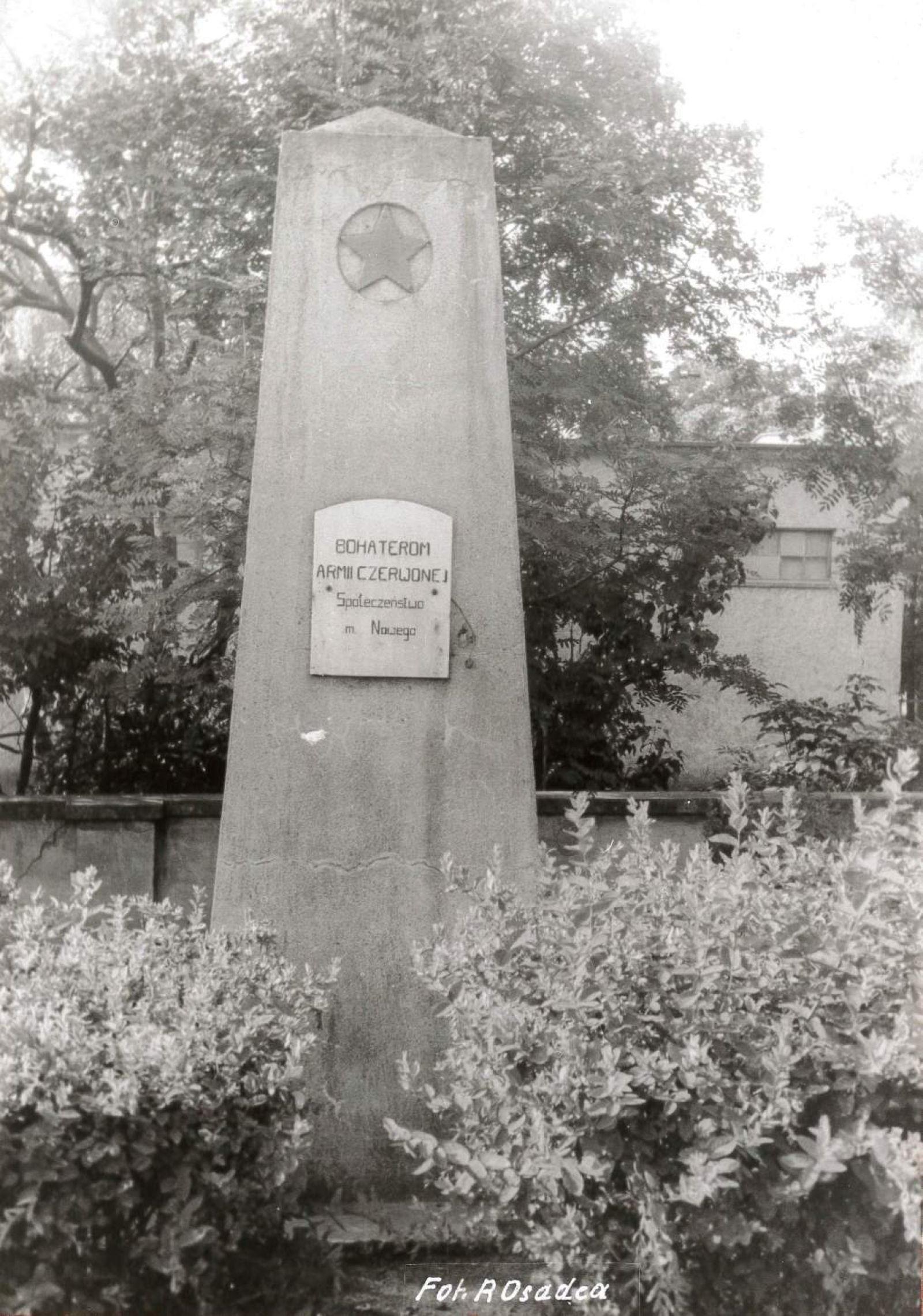 Na zdjęciu - dawna forma pomnika na cmentarzu Armii Czerwonej (ze zbiorów Urzędu Gminy) oraz zniszczenia wojenne (ze zbiorów Z. Gurbada)